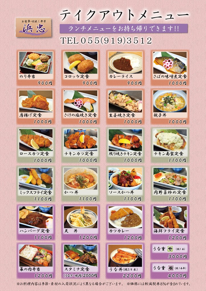 | うなぎ・天ぷら・定食・仕出し弁当 沼津「浜忠」上土町店 | ||||||||||||||||