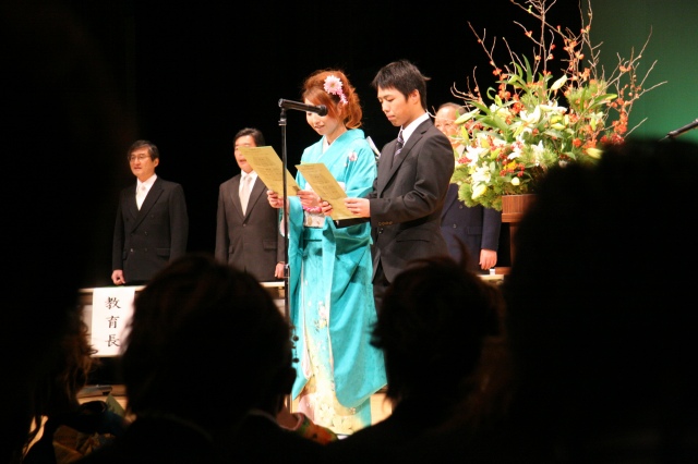 記念撮影は学校別に撮影(門中)