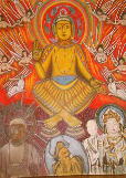 大空に舞い上がる曼陀羅の姿 F100号 1987年作品 胎蔵曼陀羅の八様院がバラキ明王、弥勒菩薩に護られている姿