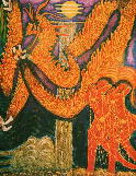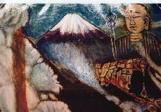 大湧谷の噴煙と地蔵菩薩 富士山の天国と大湧谷の地獄との調和を図り素晴しい景色と活気あるこの世を創生している姿 P50号
