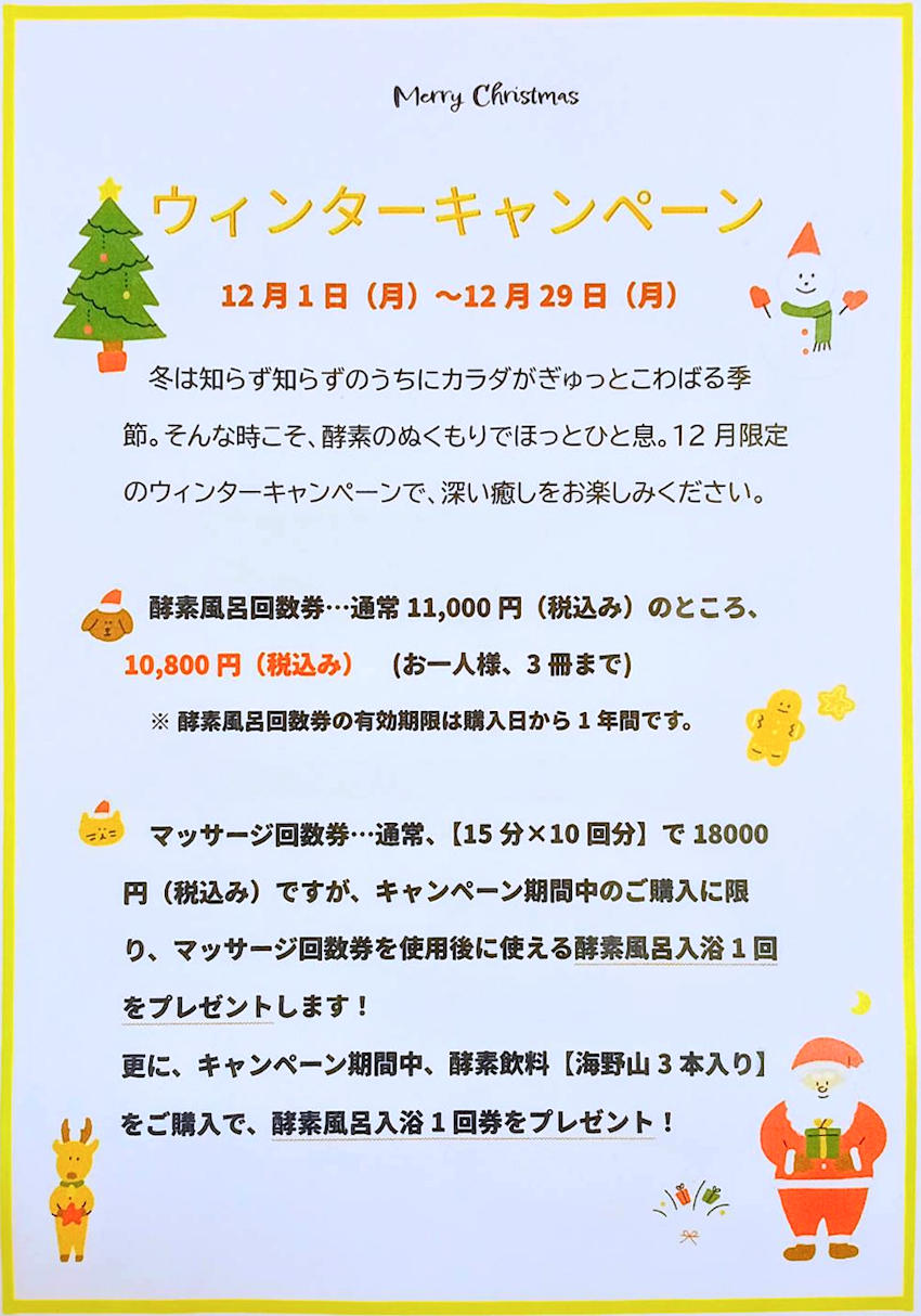 A. 酵素風呂は性質上、一日に入浴できる人数が限られます。当店では一日に18名様までがベストな温度でご入浴していただけます。酵素風呂は予約を受けておりませんので、ご来店のお客様が18名以上になりますと、やむを得ず二度目の使用となり、温度も多少ぬるめになってしまうことがあります。平日に混みあうことはほとんどありませんが、土日祝日は午前の営業から混みあうこともあり、15時以降にご来店されるお客様には、二度目の使用になる場合もありますことをご了承の上ご来店いただきますよう、よろしくお願いいたします。