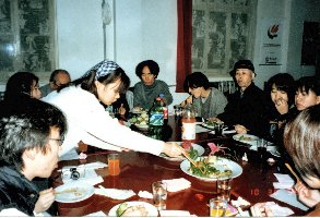 何といっても学内で一番よく利用したのは,回教徒専用の「清眞民族飯店」というごく小さな薄暗い食堂である。 清眞というのが 回教(伊斯蘭教)を示すことば。 民族,即ち少数民族と来ればこれも殆どの場合回族(huizu)やウィグル族を指している。 ここは私が構内探索中に見つけ,同室のパキスタンの友に教え,のちには医科大学からの同国学生諸君とも連れ立って昼食と夕食に4〜5人で通い詰めた。 かれらはほかの場所での食事はイスラムの掟に反しないか否か,簡単に言えば豚肉や豚のラードを使っていないかどうか,が分からないので,危なくて行けないのだ。 それに,ここのご飯は大変おいしいのである。 丼一杯1元で,二三種類のおかずを組み合わせて数人で食べても総計10元強。 肉じゃが風のおかずが口に合って旨かった。