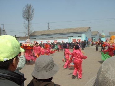 最初この村へ入った時,赤や緑の華やかな服を着た子どもと同じ服装の女性たちにおじさんも交えた村民の歓迎の踊り(春節を祝う踊りと同じもの)で出迎えられどぎまぎする。 皆が鉦の伴奏で声を合わせて “熱烈歓迎(relie huanying) ,熱烈歓迎”と囃子言葉のように叫んでくれるのである。 学校の校門には“育紅小学校と“呉城職業中学”という看板が掛かっている。 中に入って掲示板を見ると,1―6学年と7―8学年があることが分かる。 校長先生の説明では,23人の先生と380人の生徒が通う。 独り教室を覗いて教科書を見せてもらった青森県弘前市のY・Hさんは英語教育のレベルが日本よりも遥かに高いと感嘆しきりであった。