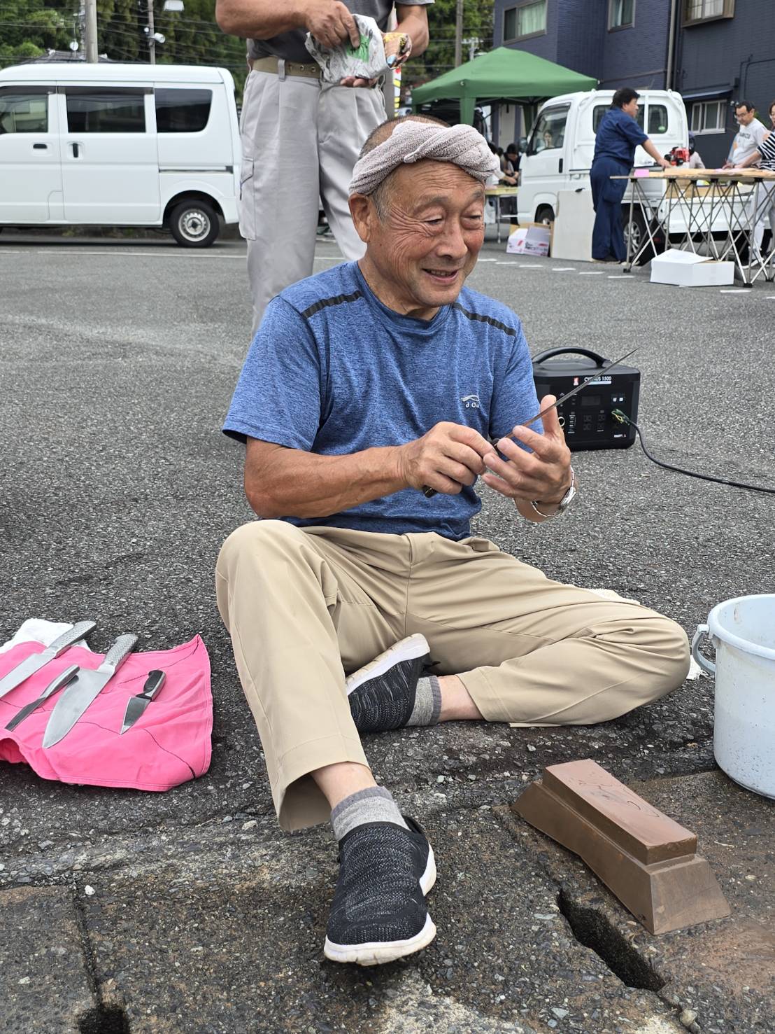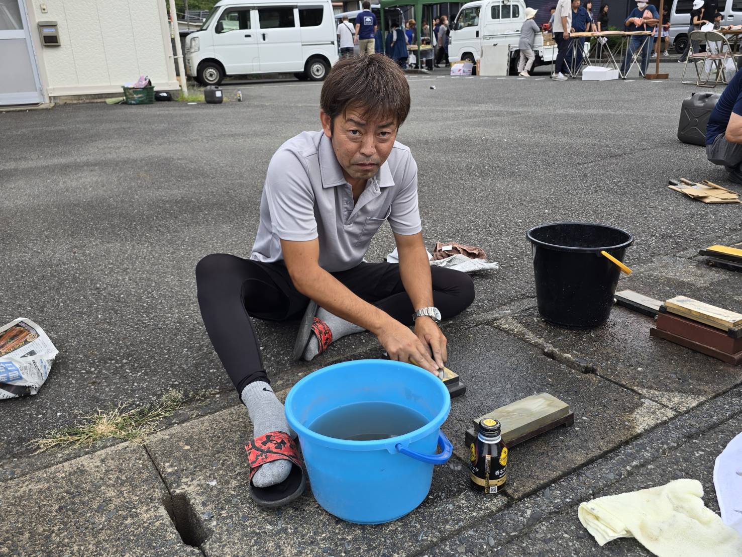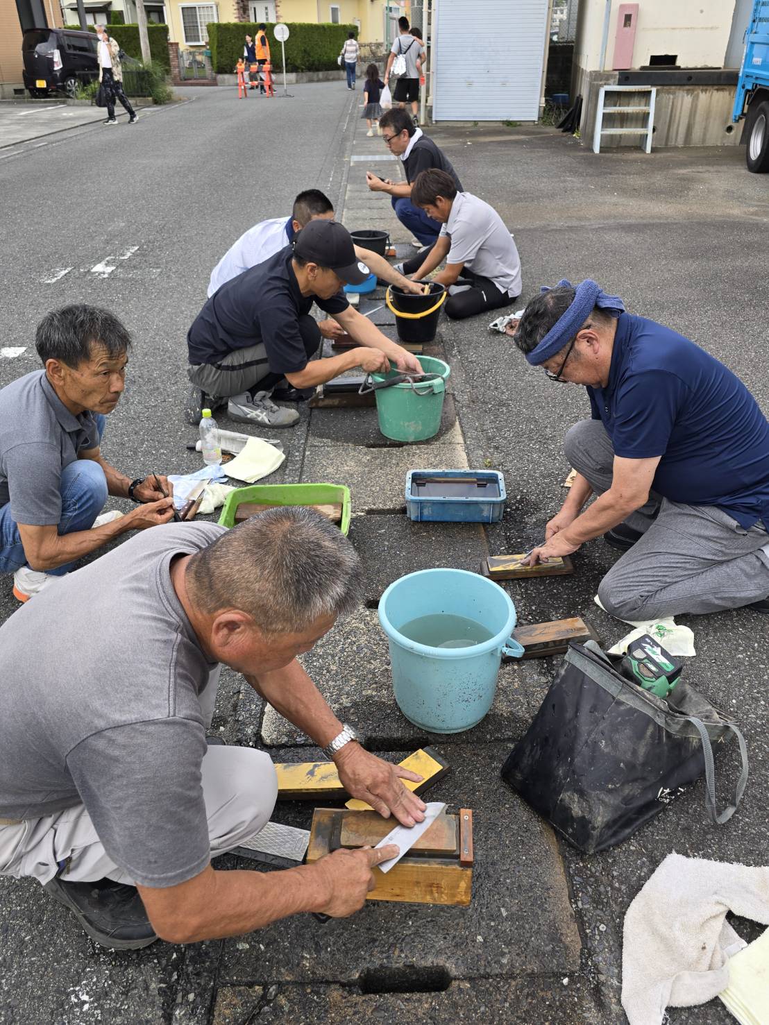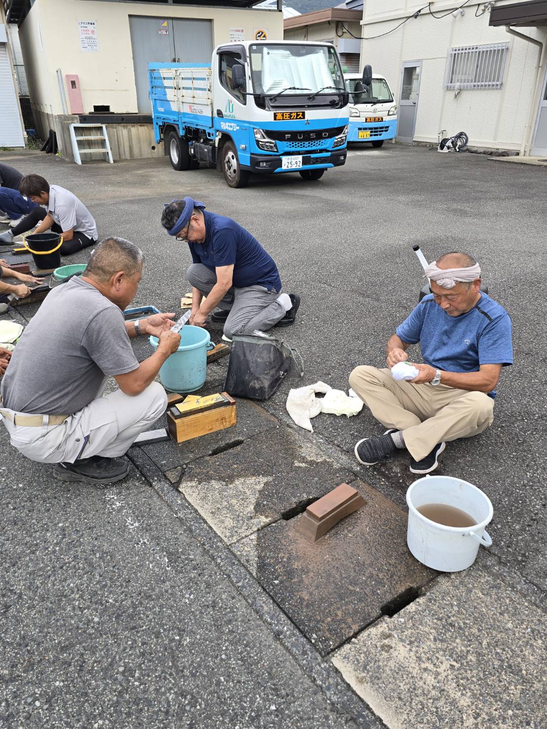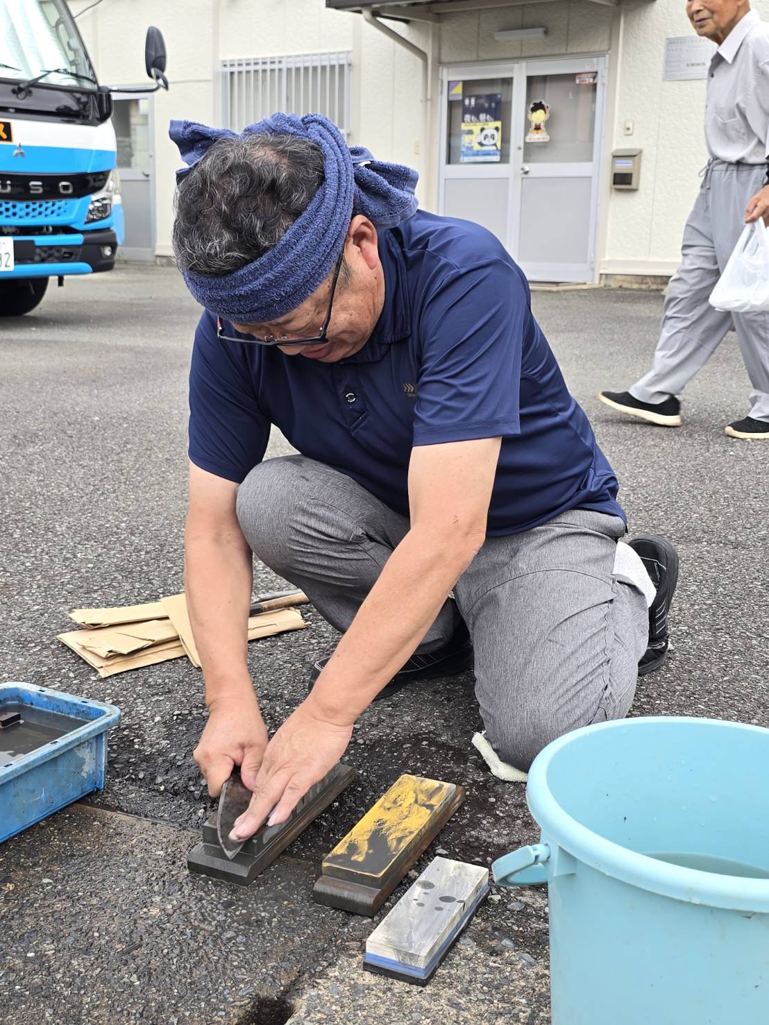 河津町支部組合員が刃物研ぎを行いました。