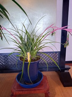 菅沼の岩田初志さんが、めづらしいヨウラク(瓔珞)筒アナナスを飾って下さりました。