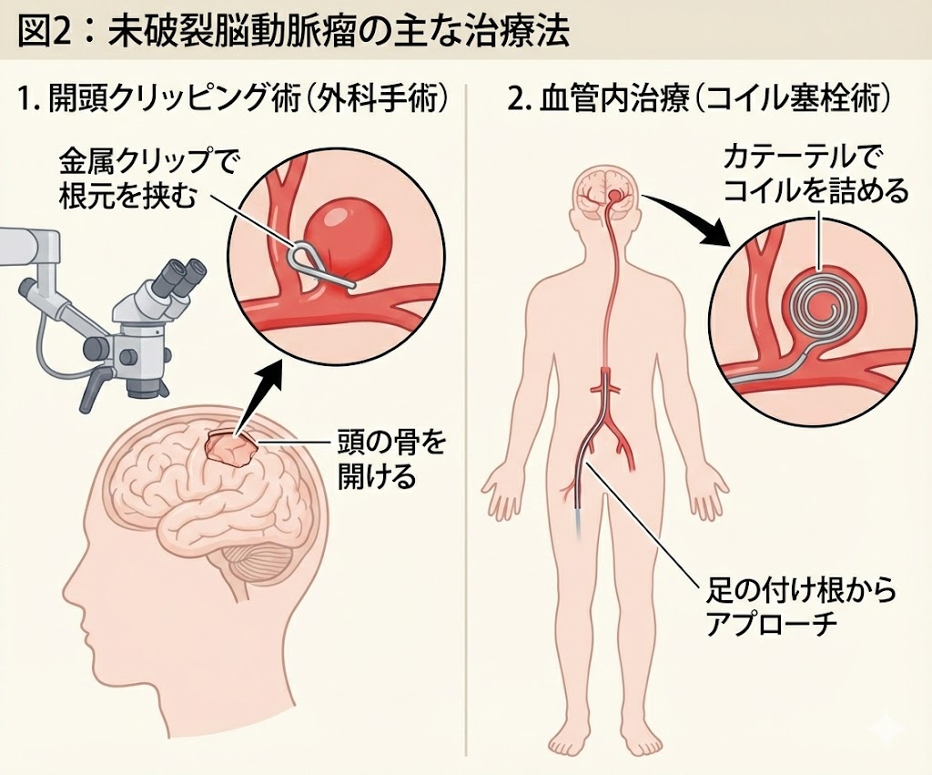 破裂のリスクが高いと判断された場合、予防的な治療が行われます。主に2つの方法があります。