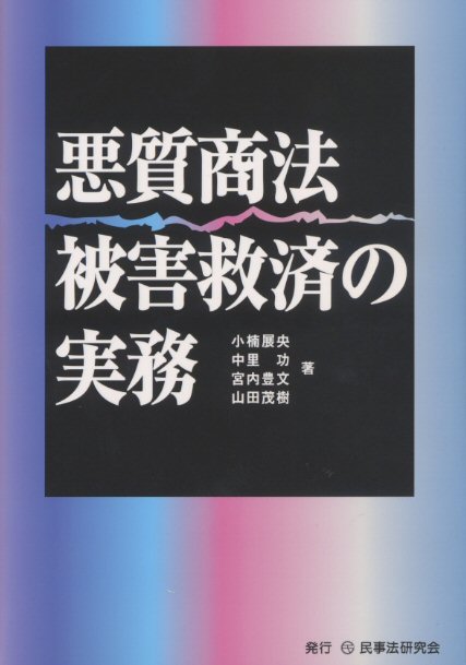 悪質商法被害救済の実務 小楠展央さん、中里功さん、山田茂樹さんと一緒に執筆させていただきました。改正特定商取引法・改正割賦販売法が成立して施行が近づいていましたが、法改正によってすべてが解決されたわけではなく、改正前の法律による解決方法を検討しておくことも、改正後における被害救済に大切であることから執筆したもので、適宜改正法にも触れています。 |