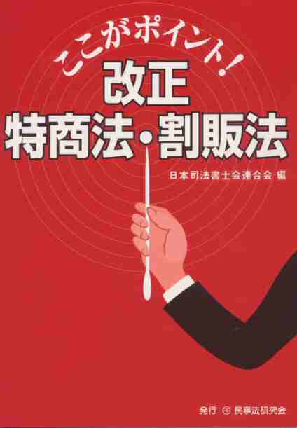 ここがポイント! 日本司法書士会連合会の消費者問題対策部消費者法制ワーキングチームの皆さんと一緒に執筆しました。改正特定商取引法・割賦販売法シンポジム及び消費者問題対応実務セミナーのテキストとして作成したものに加筆及び修正を加え、書名のとおりポイント解説になっています。 |