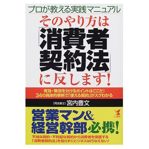 そのやり方は 消費者契約法が2001年4月1日から施行されることから、「普段法律に携わっていない方でも理解できる内容」という出版社の意向を請け執筆しました。私が、自分自身で責任をもって執筆する初めての書籍であり、さらに一般読者向けの本ということで苦労した思い出があります。一般向けとはいえ、消費者契約法について施行前から検討していましたので、消費者契約法第5条については、突っ込んだ記述をしています。 |
