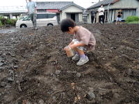 活動内容 | 平成25年度最初の活動を開催した。先ずは、今年のメイン活動となる稲作を行う準備として苗床づくりに取り組んだ。苗床は各自が持ち帰り苗を育てて、田植えの時に持ち寄ってその成長を確認しあう活動とした。続いて、海岸にて潮干狩りに取り組むと共に、隣接する勝間田川河口に設置されている消波ブロックに潜んでいる生物観察会を開催した。 | ||||||