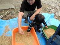 | 活動内容 | 平成25年度最初の活動を開催した。先ずは、今年のメイン活動となる稲作を行う準備として苗床づくりに取り組んだ。苗床は各自が持ち帰り苗を育てて、田植えの時に持ち寄ってその成長を確認しあう活動とした。続いて、海岸にて潮干狩りに取り組むと共に、隣接する勝間田川河口に設置されている消波ブロックに潜んでいる生物観察会を開催した。 | ||||||