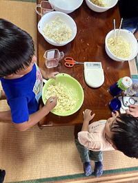活動内容 | ハイナンこども食堂の農地で育てた小麦・大麦・野菜を活用して、ピザづくりと麦茶づくりを行いました。 |