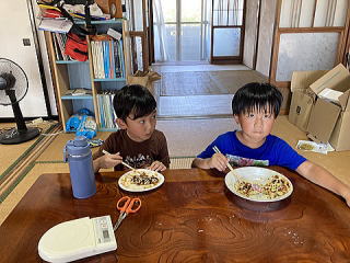 活動内容 | 天候不順で、本来は投げ釣りを予定していましたが、投げ釣りは8月17日に延期して、トウモロコシ・カボチャの収穫を行った後に、ハイナンこども食堂で昼ご飯でイサキご飯を炊いて、いただきました。 |
